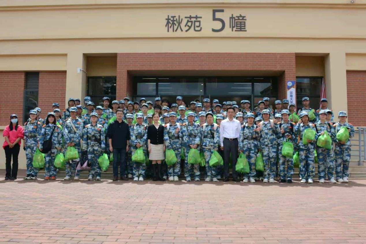 2025年9月22日,云南大学医学院党委书记李娅佳、党委副书记卫纯、副院长李宏亮、辅导员赵若辰到楸苑住宿区,亲切看望并慰问医学院2025级军训新生。