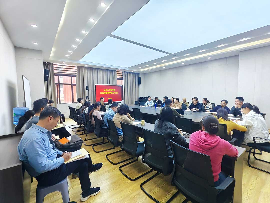 会议指出,2026年“十五五”开局之年,要坚持以习近平新时代中国特色社会主义思想为指导,持续学习贯彻落实习近平总书记考察云南重要讲话、重要指示精神和习近平总书记致云南大学建校100周年重要贺信精神,全面贯彻党的教育方针,落实立德树人根本任务,推动学院各项事业高质量发展。